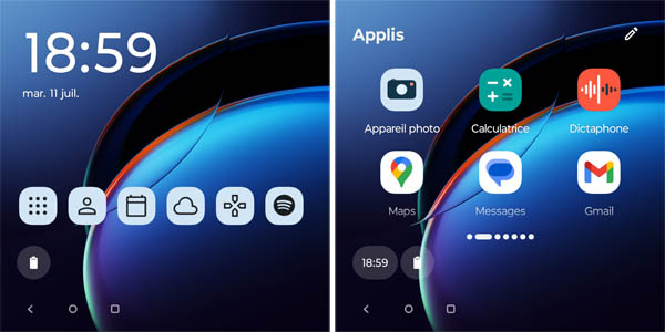 Les paramètres se présentent sous une forme originale (mais identique sur tous les mobiles de la marque) avec des onglets à déployer pour voir les fonctions correspondantes. C’est un peu déroutant au début, mais on s’y fait très vite.