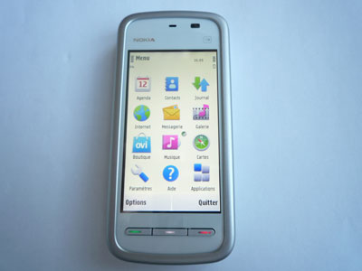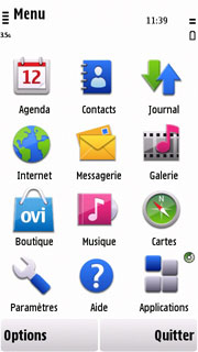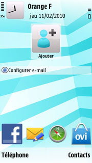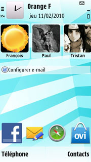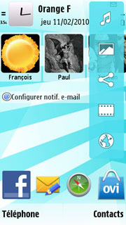 Pour en revenir à l'OS en lui-même, le S60v5 qui équipe le 5230 est assez semblable à celui que l'on trouve dans le Nokia 5530. Lorsque vous allumez le mobile, c'est une page colorée qui vous accueille. Elle se compose de modules personnalisables qui donnent accès à différents contenus et fonctions (emails, calendrier, musique, etc.).