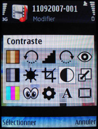 Un éditeur d'images assez complet, accessible par le menu des options quand on est sur une image, permet de retoucher les photos directement depuis le téléphone. On peut ainsi régler la netteté, rogner, changer les couleurs, enlever les yeux rouges, etc.