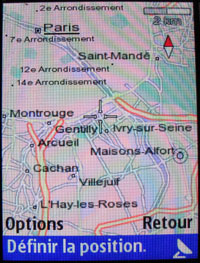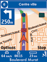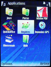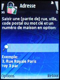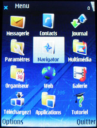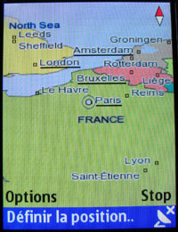 Une fois le logiciel lancé, on se rend compte que l'interface est vraiment réussie. Au démarrage, on voit d'abord la Terre dans son ensemble, puis un zoom rapide vous amène à votre position actuelle. La cartographie de la France est chargée dans la carte mémoire de 512 Mo fournie avec le téléphone.