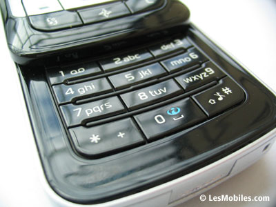 Le bloc de touches, situé sur la partie haute du slider, est parfaitement agencé. Nokia arrive à caser 8 touches autour de la croix directionnelle. Côté gauche, le premier en partant du haut sert à déclencher les menus accessibles en bas à gauche de l'écran du téléphone. Même fonction pour le bouton en haut à droite. Juste en dessous, on retrouve les traditionnels boutons vert et rouge. En plus de permettre de décrocher et de raccrocher, le vert sert de raccourci pour accéder au menu « Journal » et le rouge pour le menu « mode » (par défaut). Enfin, pour ce qui est des trois du bas, celui à droite est le bouton « c » (clear) que l'on ne présente plus. Celui de gauche permet d'accéder au menu et celui du milieu à la fonction de navigation. Nous reviendrons sur ces points un peu plus loin.