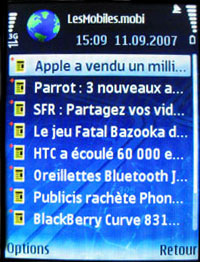 Flux RSS, Pages enregistrées, Signets automatiques, Nokia.com, Téléch applications, Télécharger icônes, Téléch clips audio, Télécharger vidéos, Télécharger thèmes, Télécharger pistes.