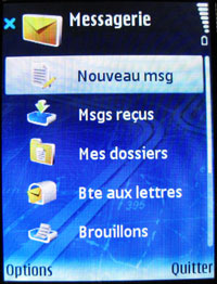 Comme vous pouvez le constater, c'est classique mais complet. Ce menu permet de gérer l'ensemble du courrier électronique, des SMS aux emails en passant par les MMS. Il offre tout un tas d'options bien pratiques comme le fait d'envoyer un message en tant que fax !