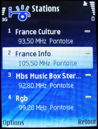 Pour jouir de la radio, il faut brancher le kit piéton qui sert aussi d'antenne. L'application offre la possibilité, c'est la moindre des choses, de garder en mémoire vos stations préférées.