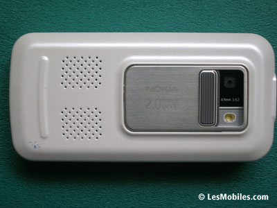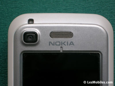 La face avant de l'appareil arbore en haut à gauche la petite caméra VGA pour les appels Visio, pour l'instant inaccessible aux abonnés Bouygues Telecom. À l'arrière, Nokia a eu la bonne idée de cacher l'appareil photo embarqué derrière un cache. On remarque aussi les deux sorties pour le son, ce mobile étant stéréo.