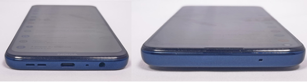 Si on fait le tour du Nokia 8.3, on note la présente du bouton d'allumage confondu avec le lecteur d'empreinte digitale. Ce dernier s'est avéré sans faille lors de nos tests refusant systématiquement l'accès aux autres personnes que son propriétaire. Juste au-dessus, il y a le double bouton pour gérer le volume. Encore un peu plus haut, toujours à droite, il y a le logement pour les cartes SIM et mémoire. Très bizarrement ce tiroir a l'aspect d'un bouton, car il ressort légèrement par rapport au reste du profil. Le premier réflexe est donc d'appuyer dessus, mais en vain? À l'intérieur, il est possible d'insérer deux cartes SIM ou une carte SIM et une carte micro SD. Le Nokia 8.3 propose 128 Go d'espace de stockage interne. Sur le profil gauche, il y a le bouton pour lancer le Google Assistant. Il est placé exactement à la même hauteur que le bouton d'alimentation, en face, et, il arrive (très) régulièrement que l'on appuie dessus sans le faire exprès alors qu'on veut simplement allumer l'appareil. Il aura fallu l'installer plus haut pour éviter toute mauvaise manipulation. Enfin, sur le profil inférieur, il y a le connecteur USB-C, une prise audio jack 3,5 mm et un haut-parleur.