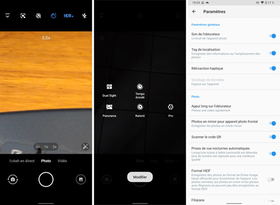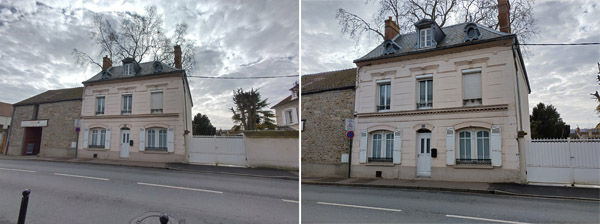 L’interface de l’application Appareil photo est identique à celle proposée sur le Nokia G50 et le Nokia X20. Très classique, elle offre la plupart des options en haut de l’écran et les modes de prise de vue en bas. On peut accéder directement à Cinéma (enregistrement vidéo à 24 images par seconde au format 21:9), Vidéo, Photo, Bokeh en direct, Nuit et Plus, mais de droite à gauche alors que sur la quasi-totalité des interfaces sous Android, c’est plutôt l’inverse, le menu Plus étant totalement à droite. C’est un petit coup de main à prendre. Alors que sur les précédents smartphones de la marque, nous n’avions pas pu personnaliser l’interface, ici, c’est possible en ajoutant les modes réunis dans le menu Plus (Dual Sight, Temps écoulé, Panorama, Ralenti et Pro) aux autres déjà présents. Les niveaux de zoom 0,6x, 1x et 2x sont immédiatement disponibles et pour aller plus loin, il faut faire un geste d’écartement des doigts afin d’obtenir l’affichage d’une molette pour monter à un maximum de 8x (le tout en numérique).