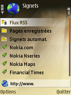 On navigue sur le Wap et le Web depuis cette page. L'utilisateur peut stocker des « signets », des favoris en fait.