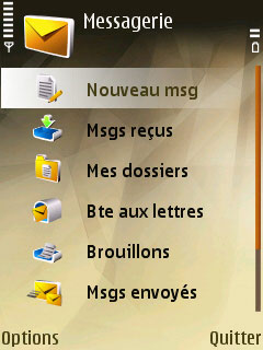 Nouveau message / Messages reçus / Mes dossiers / Brouillons / Messages envoyés / À envoyer /Rapports