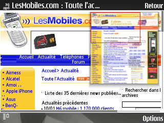 Mieux, en testant depuis le webmail de Free, nous avons même pu joindre une pièce-jointe que nous avons été cherché directement sur le téléphone à un mail ! La prise en main peut s'avérer un peu délicate vu la taille de l'écran et celle des pages Web à afficher. Dès que vous avez pris le coup de zoomer / dézoomer, de passer l'écran en mode paysage et de mettre en mémoire vos favoris, le confort de navigation s'en trouve vraiment accru. La croix directionnelle fait alors office de souris et le pointeur à l'écran est assez réactif. Si on ajoute à cela une vitesse de navigation très correcte en 3G+, on se retrouve avec le vrai Web dans la poche, et plus une version poussive.