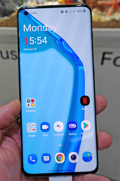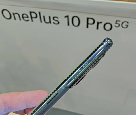 En main, le OnePlus 10 Pro donne une certaine impression de légèreté, notamment grâce à son design plutôt fin. Il fait 200 grammes sur la balance et il faut voir ce que cela donne au quotidien, mais, après quelques minutes en main, le mobile reste agréable à porter. Tout autour, on peut remarquer les différents boutons : du classique chez OnePlus avec la touche de mise en veille sur le côté droit, sous le bouton-poussoir pour prendre en sourdine (la marque de fabrique du constructeur) et le double bouton pour gérer le volume, en opposition, sur le profil gauche. L'une des autres parties remarquables du OnePlus 10 Pro, c'est son large écran percé dans le coin supérieur gauche, comme son prédécesseur. Il est incurvé sur les deux côtés, marque du haut de gamme, et s?étire sur 6,7 pouces avec une dalle AMOLED LTPO 2.0 flexible. Les couleurs sont éclatantes et le rendu gratifiant. Notez la présence d'une fréquence de rafraîchissement adaptative de 1 Hz jusqu?à 120 Hz, selon les besoins, permettant d'obtenir un défilement fluide. Difficile de juger les performances réelles en si peu de temps, mais avec son chipset Qualcomm Snapdragon 8 Gen 1 et jusqu?à 12 Go de RAM, le mobile est parfaitement à l'aise pour exécuter les applications et pouvoir passer de l'une à l'autre très rapidement.