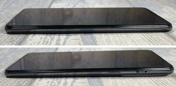 Si on fait le tour de l’appareil, on note la présence du bouton de mise en veille sur le profil droit lorsqu’on regarde le smartphone de face. Celui-ci est assez haut, ce qui peut être délicat pour les petites mains. Juste au-dessus, il y a le bouton-poussoir Slide Alert, l’une des marques de fabrique de OnePlus qui l’a toutefois laissé de côté sur les derniers modèles comme le OnePlus 10T, par exemple. Rappelons que ce bouton permet de mettre immédiatement l’appareil en mode sourdine ou vibreur. Sur le profil supérieur, il y a un microphone.