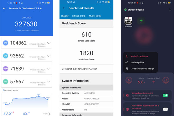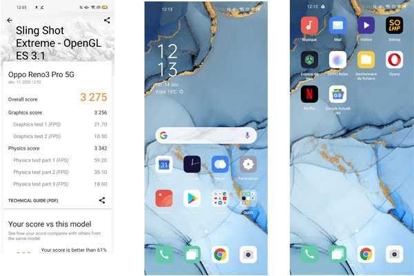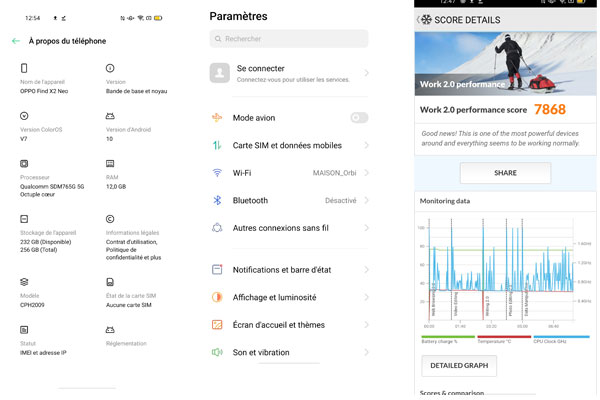 Comme le Reno4 Pro, le Find X2 Neo s'appuie sur la plateforme Qualcomm Snapdragon 765G associée à 12 Go de mémoire vive et une capacité de stockage de 256 Go. La version Pro bénéficie du Snapdragon 865 qui fait la différence. Ici, on obtient, logiquement des résultats similaires et une expérience applicative tout aussi intéressante, car parfaitement fluide.
