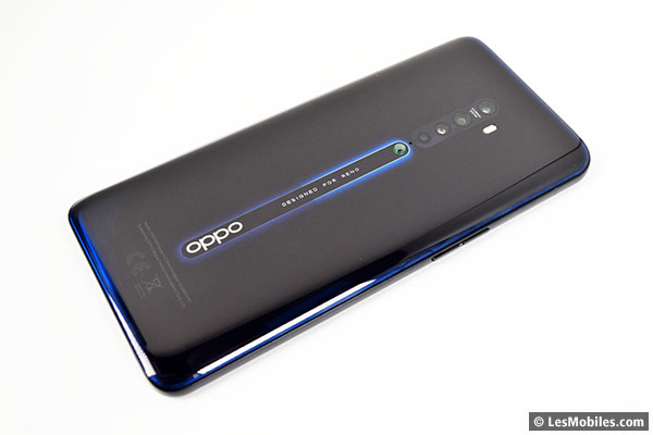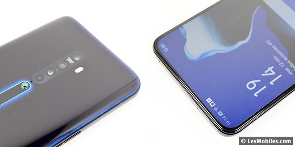 Faisons d'abord le tour du propriétaire. Quelques mois à peine après notre test du Reno, ce Reno 2 nous semble très familier. Nous retrouvons une grande dalle tactile à l'avant, sans bordure, sans trou et sans encoche. Nous retrouvons bien sûr le tiroir motorisé en forme d'aileron de requin qui a tant fait parler le printemps dernier. Nous retrouvons également un positionnement presque identique pour les éléments techniques, notamment le bloc photo, les boutons mécaniques, le port USB, les microphones, le port jack, le haut-parleur mono (qui n'a malheureusement pas bougé) ou encore l?écouteur téléphonique toujours caché dans l?épaisseur entre l?écran et la coque.