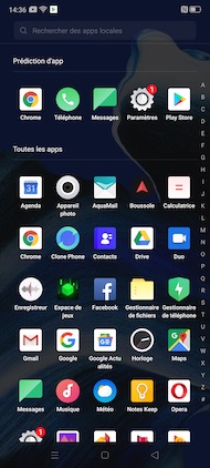 Nous sommes un peu plus dubitatifs vis-à-vis de la profusion d'applications qu?Oppo implémente dans sa ROM. Nous comprenons bien évidemment l'utilité d'intégrer AquaMail dans ColorOS, puisque Gmail est indisponible en Chine. Mais est-ce vraiment nécessaire d'imposer Facebook et Opera ? Ne serait-il pas plus opportun, même si cela peut paraître intrusif, d'afficher, comme certains concurrents, une page au premier démarrage demandant à l'utilisateur ce qu'il souhaite installer parmi une sélection d'applications partenaires ?