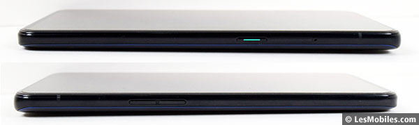 Cette dernière est toujours formée de verre minéral sur les faces et d'aluminium, avec quelques séparations entre les segments pour isoler les antennes (héritage de l'antennagate). Le bouton de mise en marche bénéficie toujours d'un trait de couleur assorti avec le petit cercle visible sous le bloc photo. Un ?il averti constatera que le tiroir des SIM a été déplacé de la tranche de gauche vers la tranche de droite, peut-être pour y inclure le lecteur de carte microSD sur le second emplacement nano SIM.