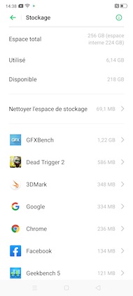 Heureusement, ColorOS est un firmware qui reste fluide grâce à une plate-forme nerveuse (basée sur le Snapdragon 730G) et sur une quantité de mémoire vive considérable (8 Go). De fait, la surcharge applicative ne se ressent pas. Notez aussi que la grande majorité des applications tierces peuvent être désinstallées si vous n'en avez pas l'usage. Enfin, Oppo a eu la bonne idée d'inclure 256 Go de stockage dans sa phablette. Difficile de s'y retrouver à l?étroit.