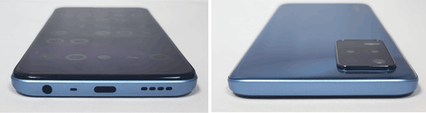 Sur le profil gauche, il y a un double bouton pour gérer le volume et l'emplacement pour les cartes SIM et une carte mémoire. Le mobile peut supporter deux cartes SIM au format nano et, simultanément une carte micro SD pour étendre la capacité de stockage interne. Le Redmi Note 10 5G ne peut accepter qu'une carte SIM et une carte mémoire ou deux cartes SIM. Enfin, sur le profil inférieur, on trouve le connecteur USB-C, une prise audio jack et un haut-parleur. Comme sur le Redmi Note 10 5G, le son délivré par le realme 8 5G est mono ce qui est plutôt normal pour un smartphone d'entrée de gamme, malgré tout. Il propose une sonorité correcte mais qui ne permet pas de profiter de toutes les subtilités d'une musique sur tout le spectre. De bien meilleurs résultats sont obtenus en branchant un casque ou un vrai système audio en externe.