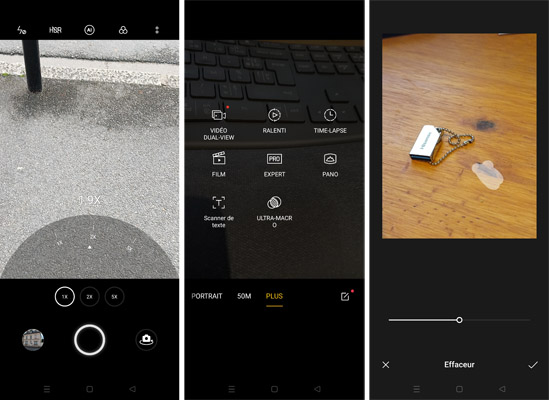 Pour être plus précis, on peut utiliser la molette. Celle-ci ne bouge pas trop lorsqu'on relâche le doigt évitant de perdre le réglage effectué et de devoir recommencer. L'application Google Lens est immédiatement accessible. En outre, trouvez dans les outils de modification des images la fonction Effacer qui permet de supprimer un élément indésirable de l'image à la manière de la gomme magique que l'on trouve sur les nouveaux Google Pixel 6 et Pixel 6 Pro avec un peu moins de qualité tout de même chez realme. L'outil de Google est effectivement plus performant.