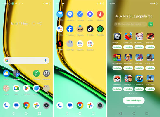 Le smartphone est livré avec les applications Google, mais il y a également d’autres applications : App Market, Booking.com, Boutique Amazon, Facebook, LinkedIn, Netflix, Spotify, TikTok et WPS Office. Exit tous les jeux que l’on trouve sur le realme C55. Plusieurs publicités sont proposées ici ou là, ce qui est légèrement agaçant, à terme, mais qui peut aussi être modéré en se rendant dans les paramètres de confidentialité. Les menus de configuration sont bien organisés et assez clairs. Un moteur de recherche permet de trouver les réglages que l’on veut.
