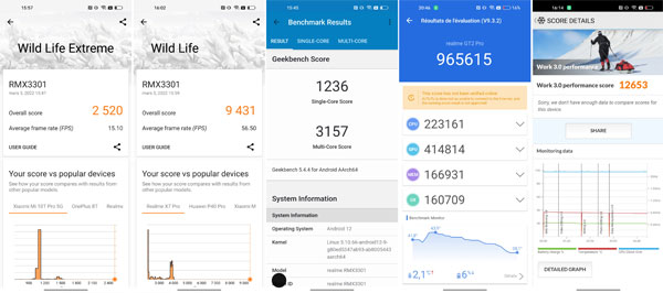 En ce qui concerne les performances, le realme GT 2 Pro embarque la puce la plus puissante du moment pour les mobiles sous Android, soit un Qualcomm Snapdragon 8 Gen 1 avec 12 Go de mémoire vive et une possibilité d'ajouter jusqu?à 7 Go de RAM en puisant dans la mémoire de stockage. Ce sont les mêmes caractéristiques que sur le Oppo Find X5 Pro, par exemple. Le realme GT 2 Pro dispose d'un système de refroidissement particulièrement efficace car le mobile ne chauffe que très peu lorsqu'il est soumis à rude épreuve. On apprécie. Avec une telle configuration, autant dire que le mobile réagit en moins de temps qu'il ne faut pour le dire et qu'il s'avère extrêmement fluide au quotidien même avec beaucoup d'applications en cours d'exécution et des sollicitations poussées.