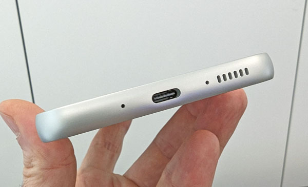 Sur le profil inférieur, il y a un haut-parleur, deux microphones et le connecteur USB-C, là aussi dans un style des plus épurés, sans aucune fioriture.