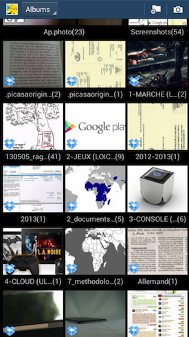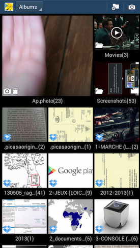 De son côté, la galerie est très classique et est structurée sur une colonne : elle affiche vos dossiers et vos dossiers synchronisés (ceux de Dropbox par exemple) et vos fichiers image. La navigation est intelligente et le partage est efficace, l'application vous permettant d'envoyer des fichiers vers d'autres applications, comme celles gérant vos réseaux sociaux. Sobre et fonctionnelle, en somme.