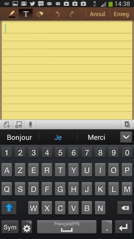 Du côté du clavier et de la saisie de texte, c'est plus problématique. Vue la taille de l'engin, vous vous doutez que ce n'est pas forcément aisé de taper du texte à une main : c'est même impossible ou très difficile. Ce qui est plus pénible en revanche, c'est que le clavier est vraiment trop gros. Même avec deux pouces, cela n'est pas naturel d'accéder à telle ou telle touche et bien souvent, vous appuierez sur la mauvaise. C'est assez paradoxal puisqu'on aurait pensé que plus le clavier est gros plus les touches seraient accessibles, mais ce n'est pas le cas du tout en l?état : les contorsions des pouces rendent la tâche plus difficile et pénible que prévu, même avec de l'entraînement.