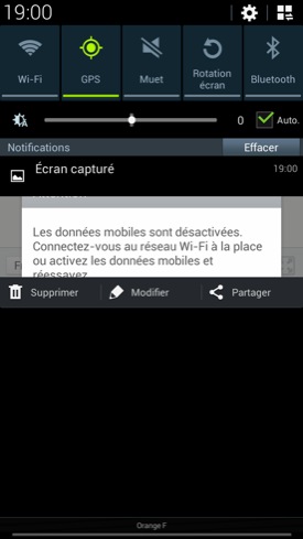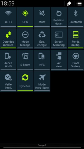 Bien entendu, on retrouve la barre de notifications, extrêmement pratique pour retrouver tout ce qui se déroule sur votre smartphone. Samsung n'a pas fait l'erreur de HTC et a ajouté à sa barre des contrôles rapides des paramètres, personnalisables qui plus est, ce qui permet d'avoir accès à toutes les fonctionnalités simples en un clic. Wi-Fi, Bluetooth, Mode Avion, rotation de l?écran... tout se retrouvera dans cette barre à dérouler. C'est là aussi que vous trouverez vos appels manqués, SMS reçus, captures d?écrans prises, courriels arrivés dans vos boîtes, bref, toute l'activité de vos comptes sociaux et professionnels. C'est ce qui manque beaucoup, par exemple à Windows Phone 8.