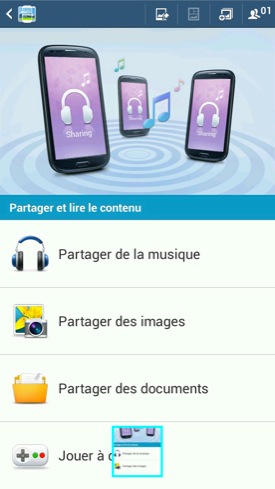 Enregistreur vocal est un enregistreur vocal. Les micros ne sont pas sensationnels, attendez-vous donc à avoir pas mal de bruit de fond, mais l'application fait le boulot. Flipboard est le célèbre lecteur de flux RSS qui propose une mise en page élégante de vos articles. Il est disponible sur le Play Store, mais comme Samsung avait eu l'exclusivité pour le Galaxy S3, il se retrouve toujours préinstallé sur les modèles Galaxy. Group Play n'a rien de sexuel, c'est une application assez intéressante qui vous permettra de faire plusieurs choses en connectant des appareils. Transférer des fichiers, partager des photos, mais aussi, jouer en multi-joueurs, chacun sur son écran. Il faut évidemment que l'appareil de vos amis soit compatible et que les jeux utilisés proposent la fonctionnalité : Samsung n'en fournit que 2.