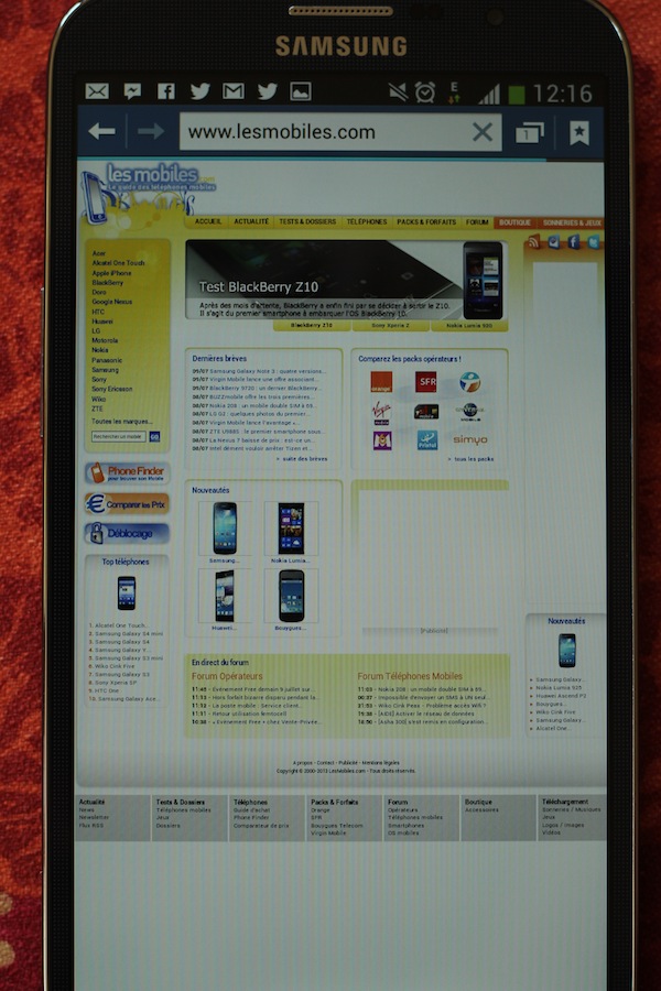 Au niveau de la colorimétrie, le Super Clear LCD est plutôt bien calibré même s'il n'a pas l'effet resplendissant des AMOLED utilisés sur les téléphones haut de gamme du constructeur. Vous aurez des tons plus neutres et un contraste moins marqué, mais cela n'est pas forcément plus mal. On sent toutefois, malgré la réussite de ce côté, que l'on ne joue pas dans la même cour que celle du Galaxy S4 ou de la série Note. Dès lors, on peut dire encore une fois que Samsung a surspécialisé le Mega en choisissant un écran hors norme et moins bien défini que la plupart de ses confrères, Galaxy Note premier du nom inclus : il excelle en lecture multimédia, mais n'est pas des plus adaptés aux tâches classiques de surf.