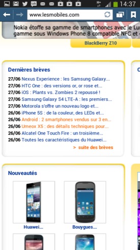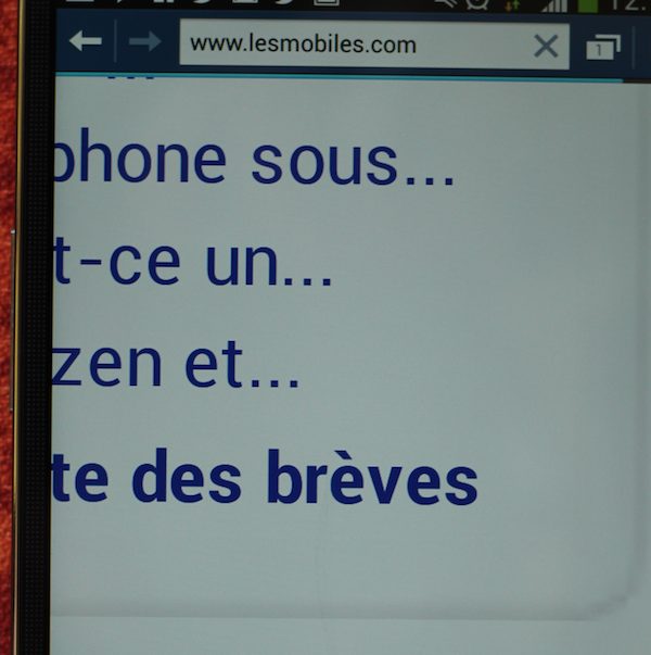 Et du coup, que retrouve-t-on sur l?écran le plus grand de la téléphonie actuelle ? Une définition d'il y a deux ans : du 1280x720 pixels. Si vous avez été habitués à un taux de pixels par pouce très élevé, c'est un net retour en arrière puisque l'engin atteint à peine les 233 ppp. En pratique, une définition faible sur un écran aussi grand est assez problématique : par exemple, quand vous affichez une page web en plein écran, sans la zoomer, le smartphone n'est pas assez bien défini pour que les caractères soit nets. On cherche donc l'utilité d'avoir un écran de cette taille pour la navigation, s'il faut à chaque fois zoomer pour lire.