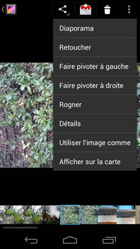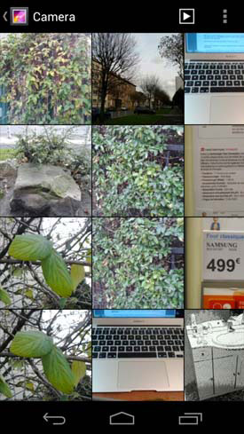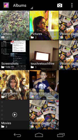 L'application « Galerie » qui recense les photos a elle aussi évoluée, d'un point de vue esthétique du moins. Elle s'organise toujours autour des dossiers d'images présents dans la mémoire du smartphone, mais les petites icones apparues depuis la version 2.1 d'Android laissent leur place à des vignettes plus grosses. Pour le reste, l'ergonomie de cette fonction ne change pas.