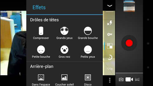 Pour ce qui est de la vidéo, cette interface propose logiquement encore moins d'options. Néanmoins, il y en a une qui ne manquera pas de vous intéresser et que vous essaierez certainement régulièrement sur votre entourage : la déformation de visage en temps réel.