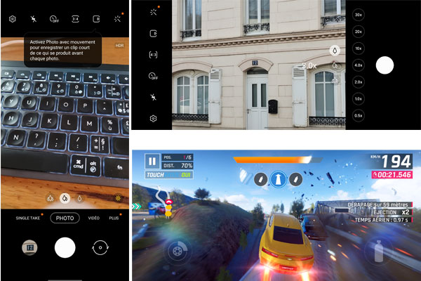 La partie photo est confiée à un triple capteur dont un module principal de 12 mégapixels ouvrant à f/1.8 associé à un module grand angle de 12 mégapixels et un téléobjectif de 8 mégapixels avec zoom optique 3x. Les objectifs sont donc moindres que sur les autres mobiles de la série S20.