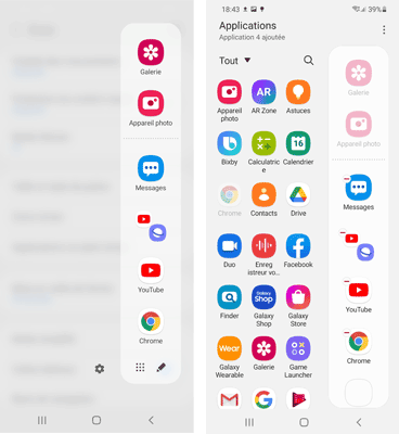 Cette version d'Android 11 profite d'une surcouche logicielle Samsung One UI 3.1. Celle-ci est toujours aussi colorée que les précédentes avec la possibilité de pousser la personnalisation assez loin. Il y a la possibilité d'afficher une barre latérale personnalisable qui permet de lancer plus rapidement certaines applications ou fonctions.