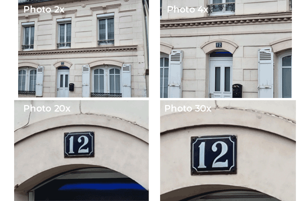 L'application Caméra permet d'utiliser directement les modes Single Take, Photo, Vidéo et Plus. Ce dernier cache les modes AR Dooble, Pro, Panorama, nourriture, nuit, portrait, vidéo portrait, vidéo pro, super ralenti, ralenti, hyperlapse et vue réalisateur. Dans ce dernier, on peut filmer à la fois ce qui se passe devant et derrière le mobile, pratique pour les vlogueurs. Il y a plusieurs niveaux de zoom dont les grands paliers sont immédiatement accessibles sur l'interface facilitant grandement la prise en main. Cela évite d'avoir à pincer puis d?écarter les deux doigts sur l?écran et d'avoir un niveau bancal, in fine. Sinon, il est toujours possible d'utiliser la roue du zoom où des vibrations se sont sentir à différents niveaux ce qui permet aussi de savoir où on en est. Notez aussi l'apparition d'une petite fenêtre lorsqu'on agrandit à fond ce qui permet de se situer dans la scène.