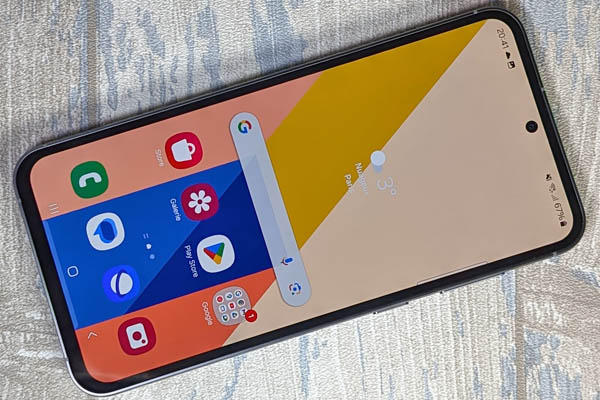 La surface d’affichage du Galaxy S23 FE est très agréable au quotidien. L’écran répond tout à fait à toutes les sollicitations (si besoin, on peut augmenter la sensibilité de l’écran) et s’avère bien assez lumineux pour être utilisé en extérieur, même en plein soleil tout aussi bien qu’en condition de pénombre, avec une luminosité minimale tout à fait acceptable. Officiellement, Samsung annonce une luminosité de 1450 cd/m², soit exactement comme les Galaxy S23 et S23+ et légèrement moindre que celle du S23 Ultra, 1750 cd/m².