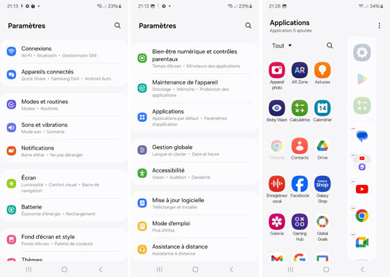 Bien entendu, Samsung propose aussi ses propres applications dont SmartThings, Samsung Health, Samsung Pay, AR Zone, Samsung TV Plus.