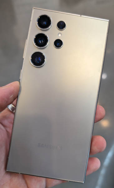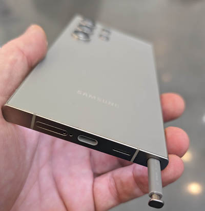 Le smartphone Samsung Galaxy S24 Ultra représente donc le modèle flagship de la marque sud-coréenne. Ce que l’on remarque immédiatement c’est l’absence de différence visuelle significative par rapport à son prédécesseur le Galaxy S23 Ultra. Notons toutefois que le nouveau modèle profite d’un châssis en titane qui se veut être particulièrement robuste contre les chocs permettant ainsi d’assurer au téléphone une plus grande durabilité. Rappelons que la coque du Galaxy S23 Ultra est en aluminium.
