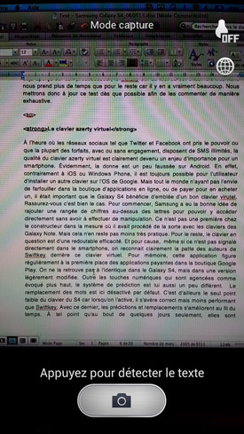 Enfin, on note également que le constructeur a implémenté une fonction de reconnaissance de caractères (OCR) qui peut se révéler bien pratique. Il suffit de prendre en photo un texte, puis de sélectionner « Détecter le texte » dans les options de la photo dans Galerie, pour voir le texte photographié sur la dite image se faire consigner, comme par magie, dans un fichier texte. Le taux de reconnaissance n'est pas parfait, mais le système fonctionne étonnement bien dans l'ensemble. Même s'il faut repasser une fois derrière dans le fichier texte pour corriger un peu, cette fonction est d'ores et déjà utilisable et pourra faire gagner à certaines professions un temps fou.