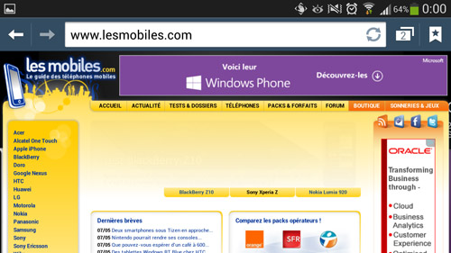 Dans le premier jet de ce test, nous vous disions que les puristes maniaques des microlags (comme nous) ne pourraient s'empêcher de remarquer de temps à autres de très légères coupures, notamment lorsque la mémoire vive est saturée. Sauf qu'avant même que nous publiions ce test, Samsung a dégainé une mise à jour qui améliore encore la fluidité et la réactivité de son appareil, éradiquant notamment la plupart des microlags évoqués plus haut. Du coup, seul l'appui sur le bouton « Home » occasionne encore un temps de latence. Il ne s'agit pas d'un lag, mais bien de la manière dont se comporte TouchWiz. Ce n'est pas gênant et l'on s'y fait rapidement. Mais les fous de vitesse ne pourront s'empêcher de remarquer ce léger temps de latence. De même, il arrive parfois que les écrans d'accueil aient besoin de se charger de nouveau quand vous quittez une appli particulièrement gourmande en ressources système. Heureusement, ce rechargement est quasi-instantané et ne gêne en aucun cas l'utilisation. Plus irritant, l'accéléromètre se montre parfois capricieux et l'affichage met régulièrement un peu de temps à basculer.