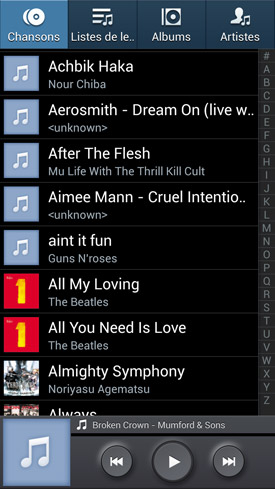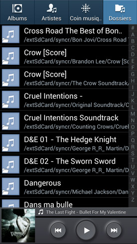 Pour le reste, le lecteur musical bénéficie également d'un classement des chansons par dossiers tels qu'ils figurent sur la carte mémoire, ce qui est nouveau. Cela peut notamment faciliter la vie de celles et ceux d'entre vous qui possèdent un Mac. Même s'il reste quand même quelques manipulations à faire, il suffit désormais de créer un dossier avec le nom de votre album / sélection, puis de copier toutes les chansons directement dedans. Cela ne vaut pas une solution payante comme iSyncr qui synchronise d'un coup les listes de lecture, mais c'est tout de même mieux que rien.