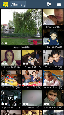 Pour commencer, le constructeur a revu la structure de la présentation puisque l'ensemble n'est plus constitué seulement de petits carrés avec des prévisualisations de photos. À l'instar d'un HTC avec son One, Samsung a ici davantage hiérarchisé les photos que l'on trouve au sein d'un même dossier. Ainsi, lorsque vous vous trouvez dans l'un de ces dossiers, la première image apparaît toujours de manière un peu plus grande que les suivantes.