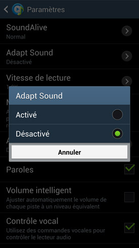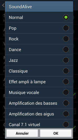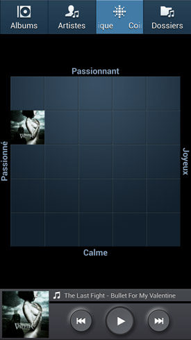 C'est d'ailleurs par cette dernière que nous allons commencer. Le lecteur musical n?évolue pas outre mesure par rapport à celui que l'on trouvait dans la précédente génération de smartphones du constructeur. Ce qui n'est pas bien grave dans la mesure où il était déjà très complet. Il offre donc les fonctionnalités devenues habituelles comme l'affichage des pochettes lors de la lecture, les classements par chansons, artistes, listes de lecture, etc. On note également la présence de toute une batterie d?égaliseurs, appelés SoundAlive, pour personnaliser l?écoute selon vos propres goûts. Et si rien ne vous convient, vous pouvez toujours recourir à un égaliseur totalement personnalisable, sur sept bandes. Un égaliseur qui simule un son 7.1 est lui aussi de la partie. Son rendu dépend grandement de la chanson sur laquelle il est employé.