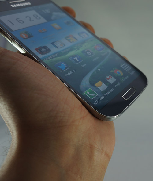Le Galaxy S4 apparaît alors comme étant notablement plus léger, tout en profitant d'une prise en main plus agréable et plus sûre que celle de son aîné. Cet état de fait est certainement à mettre à l'actif des bords un peu moins évasés de l'appareil.