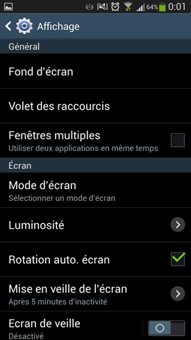 Pourquoi vous parler de tout cela dans ce test du Galaxy S4 ? Tout simplement parce qu'avec sa définition de 1920 x 1080 pixels sur une dalle de 5 pouces, le dernier-né de Samsung se retrouve avec une densité de pixels par pouce délirante de 441 ! En clair, les pixels seraient donc encore plus indiscernables que sur un écran Retina où ils sont déjà censés être indiscernables? Tout ça pour vous dire que si vous possédez déjà un smartphone doté d'un écran HD 720p, il ne faut pas vous attendre à prendre une claque dans la figure lorsque vous en allumerez un embarquant un afficheur Full HD. Évidemment, du point de vue de la finesse d'affichage, le résultat est tout simplement parfait. Vous aurez beau coller votre nez sur l?écran, vous aurez une migraine avant d'apercevoir le moindre pixel apparent. Si l'on compare avec un Galaxy S3, la différence est facilement perceptible pour toutes les fonctions textuelles comme les livres électroniques, le navigateur Web, la messagerie, etc. Dans l'interface, les plus observateurs remarqueront également que les icones et les polices du système profitent elles aussi de cette résolution accrue.