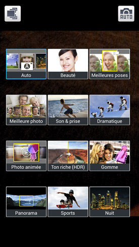 Le constructeur s'est montré particulièrement généreux puisque l'on retrouve pas moins de douze modes différents. Bien sûr, tous n'ont pas la même utilité selon vos besoins. Toutefois, sachez que Samsung semble avoir dressé une sorte de check-list de ce que proposent les smartphones concurrents en matière de mode photographique. Puis, le coréen s'est appliqué à rayer, une par une, les éléments de cette check-list, afin d?être le plus complet possible. On retrouve donc les modes habituels comme « Auto », « Tons riches - HDR », « Panorama », « Meilleures Poses », « Sports » ou encore « Nuit ». Nous n'allons pas les aborder en détail car leurs noms sont évocateurs et il s'agit désormais de classiques sur tous les mobiles haut de gamme.