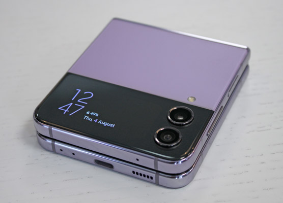 La nouvelle batterie, associée au nouveau processeur, un Qualcomm Snapdragon 8+ Gen 1 qui profite d’une meilleure efficience, le smartphone promet une meilleure autonomie ce que nous ne manquerons pas de vérifier lors de notre test complet. En tout cas, même avec une batterie plus importante, la prise en main reste excellente et l’équilibre est très bon. Les performances devraient être au rendez-vous dépassant assez largement les résultats obtenus avec le Galaxy Z Flip3 et pouvant rivaliser avec les smartphones les plus haut de gamme. Il y a toujours 8 Go de mémoire vive à l’intérieur. Le Galaxy Z Flip3 est proposé avec 128 ou 256 Go. Le Galaxy Z Flip4 propose également une version de 512 Go d’espace de stockage interne.