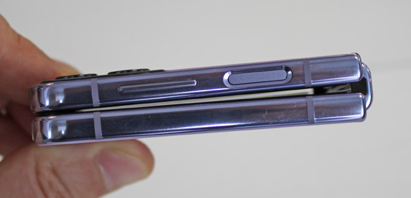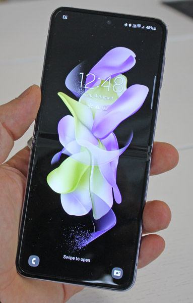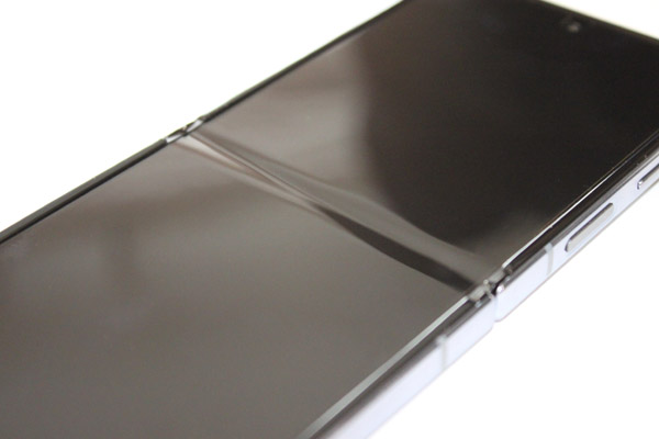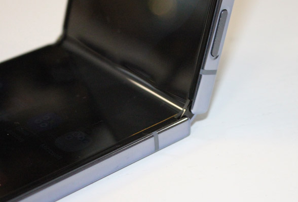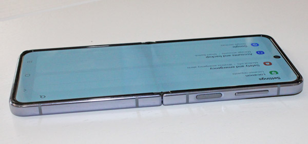 Ouvrons maintenant le smartphone pour constater immédiatement que le pli de l’écran, au milieu est toujours aussi visible que sur le précédent. On la voit mais on la sent tout autant. De ce côté, même si Samsung a réussi à rendre sa charnière plus fine, elle pince toujours autant la surface d’affichage lorsqu’elle est repliée. En outre, on peut toujours constater un espace entre les deux volets du mobile quand il est fermé. C’est notamment pour cette raison que le smartphone, comme le modèle Fold, n’est pas certifié résistant à la poussière mais seulement totalement étanche à l’eau douce, en immersion. Lorsque le mobile est ouvert, on remarque également que les bordures sont très légèrement plus fines que celles du précédent modèle. L’écran interne est toujours doté d’une dalle AMOLED sur 6,7 pouces en diagonale mais celle-ci est de type LPTO ce qui signifie qu’elle peut faire descendre sa fréquence de rafraîchissement jusqu’à 1 Hz en montant jusqu’à 120 Hz afin d’offrir une parfaite fluidité dans ce dernier cas ou une consommation moindre dans le premier. En ce qui concerne la consommation, le nouveau modèle profite de 400 mAh de plus que son prédécesseur.